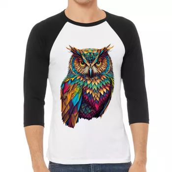 Cute Owl Baseball T-Shirt – Colorful T-Shirt – Cool Art Baseball Tee