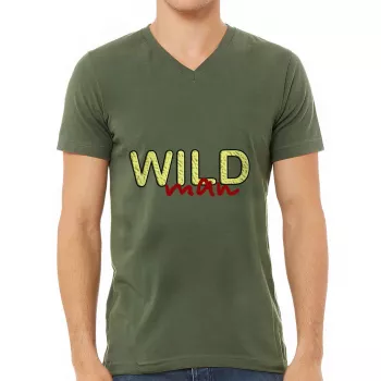 Wild Man V-Neck T-Shirt – Cool T-Shirt – Themed V-Neck Tee