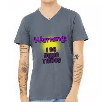 Warning I Do Dumb Things V-Neck T-Shirt – Sarcastic T-Shirt – Funny Saying V-Neck Tee