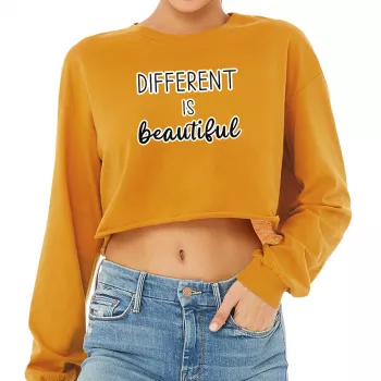 Different Is Beautiful Cropped Long Sleeve T-Shirt – Cute Design Women’s T-Shirt – Graphic Long Sleeve Tee