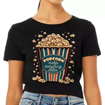 Popcorn Women’s Cropped T-Shirt – Funny Design Crop Top – Printed Cropped Tee