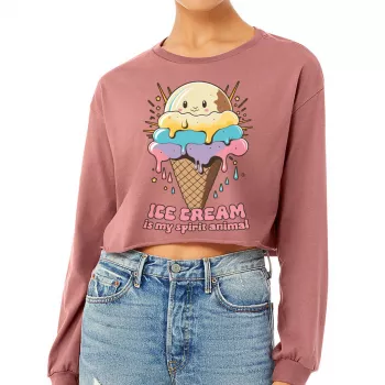Funny Ice Cream Cropped Long Sleeve T-Shirt – Cute Women’s T-Shirt – Graphic Long Sleeve Tee