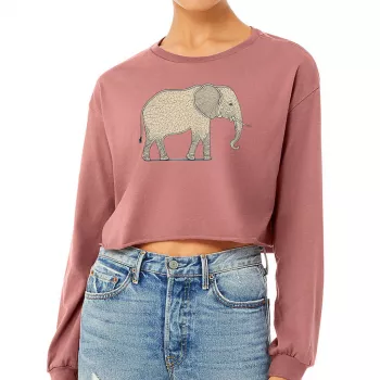 Elephant Graphic Cropped Long Sleeve T-Shirt – Safari Women’s T-Shirt – Best Design Long Sleeve Tee