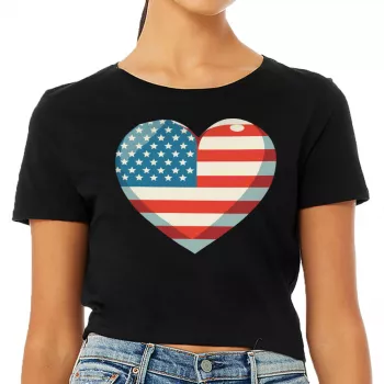 Flag Heart Women’s Cropped T-Shirt – USA Flag Crop Top – Patriotic Cropped Tee
