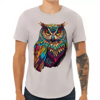 Cute Owl Curved Hem T-Shirt – Colorful T-Shirt – Cool Art Curved Hem Tee