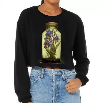 Themed Cropped Long Sleeve T-Shirt – Flower Bottle Women’s T-Shirt – Printed Long Sleeve Tee