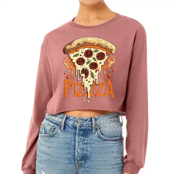 Pizza Graphic Cropped Long Sleeve T-Shirt – Trendy Women’s T-Shirt – Themed Long Sleeve Tee