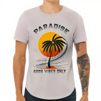 Good Vibes Only Curved Hem T-Shirt – Paradise T-Shirt – Palm Tree Curved Hem Tee