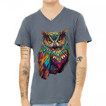 Cute Owl V-Neck T-Shirt – Colorful T-Shirt – Cool Art V-Neck Tee