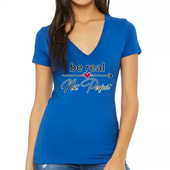 Be Real Women’s V-Neck T-Shirt – Cute Design V-Neck Tee – Trendy T-Shirt