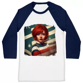 Girl With Red Hair American Flag Baseball T-Shirt – Print T-Shirt – Flag Tee Shirt