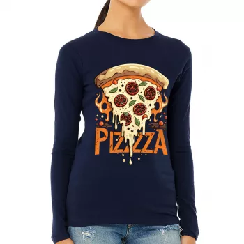 Pizza Graphic Women’s Long Sleeve T-Shirt – Trendy Long Sleeve Tee – Themed T-Shirt