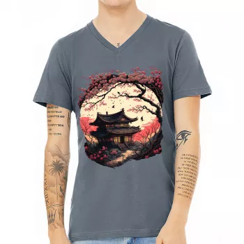 Japanese Art V-Neck T-Shirt – Blossom T-Shirt – Cute V-Neck Tee