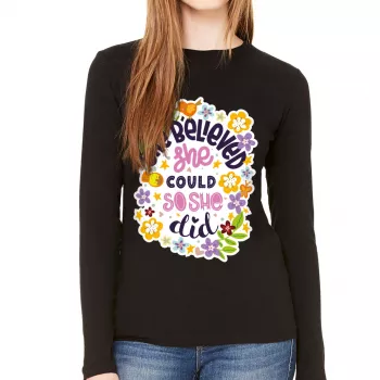 She Believed She Could So She Did Women’s Long Sleeve T-Shirt – Inspirational Long Sleeve Tee – Printed T-Shirt