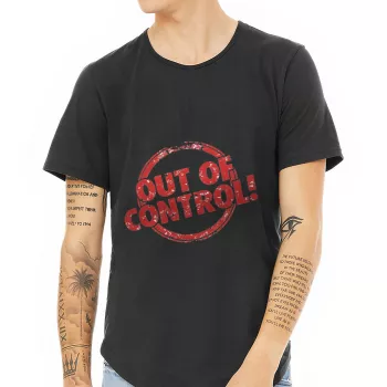 Out Of Control Curved Hem T-Shirt – Printed T-Shirt – Cool Print Curved Hem Tee
