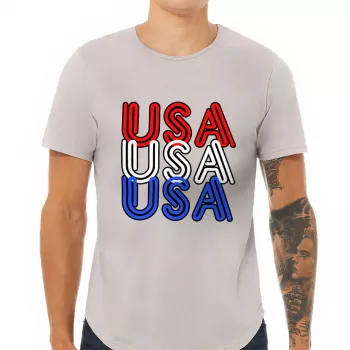 USA Printed Curved Hem T-Shirt – Patriotic T-Shirt – Best Print Curved Hem Tee