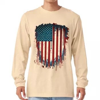 Patriotic Design Long Sleeve T-Shirt – American Flag T-Shirt – Trendy Long Sleeve Tee