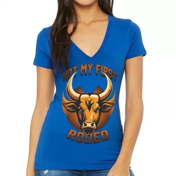 Not My First Rodeo Women’s V-Neck T-Shirt – Bull Design V-Neck Tee – Cool Graphic T-Shirt