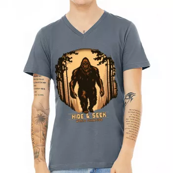Bigfoot Hide and Seek Champion V-Neck T-Shirt – Cute T-Shirt – Illustration V-Neck Tee