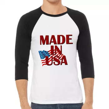 Made in USA Baseball T-Shirt – American Flag T-Shirt – Patriotic Design Baseball Tee
