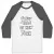 features raglan 3/4 sleeves and a modern fit that is perfect for a day